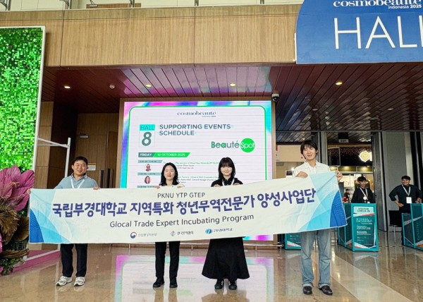 박람회에서 국립부경대 GTEP 사업단 학생 3명은 부산경제진흥원과 협력해 부산 지역의 화장품 및 뷰티 기업 6개 사의 홍보대사로 나서 바이어 상담을 진행하며 해외 판로 개척을 지원했다.