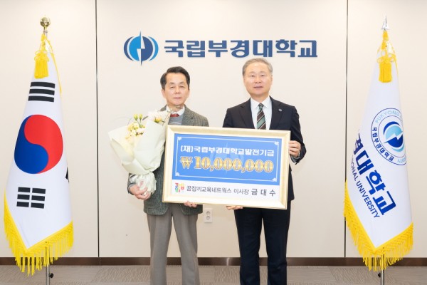 국립부경대학교(총장 배상훈)는 2월 4일 오전 대학본부 접견실에서 금대수 꿈잡끼교육네트웍스 이사장 발전기금 전달식을 개최했다.
