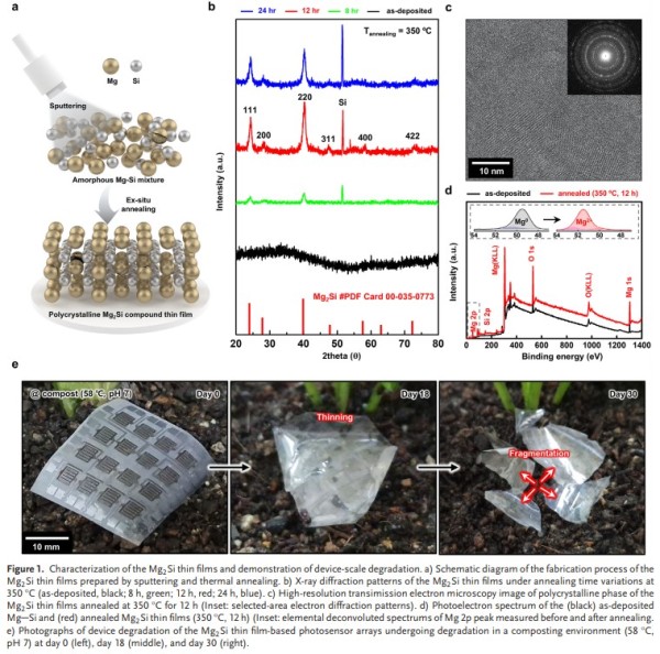 김 교수는 일정 기간 안정적으로 작동한 후 특정 환경에 노출되면 흔적 없이 녹아 분해되는 친환경 반도체 소재 마그네슘 실리사이드(Mg₂Si)가 실제 적용 가능한 반도체임을 입증한 논문 ‘Dissolution study of biodegradable Magnesium Silicide thin films for transient electronic applications’를 SCIE 저명 국제학술지 <Advanced Science>에 최근 게재했다. 이 연구는 생분해성 전자소자(Transient Electronics) 구현 가능성을 실험적으로 검증했다는 점에서 학술적·산업적 가치를 인정받았다.