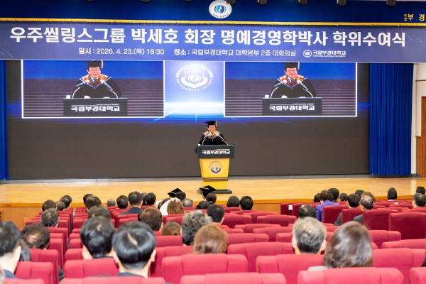 배상훈 총장은 “박세호 회장님께 영예의 명예 경영학박사 학위를 수여하는 행사를 열게 돼 정말 뜻깊다”며, “회장님의 전폭적인 지지와 응원에 힘입어, 우리 대학은 지역과 국가, 세계에서 인정받는 연구중심대학, AX혁신대학, 글로벌혁신대학으로서 더욱 자랑스러운 대학으로 성장해 나가겠다”고 밝혔다.